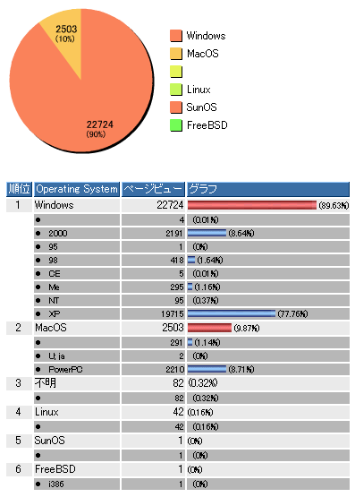 また私の会社のホームページへの10月のアクセスを見るとWindowsXP以外もかなり多い。