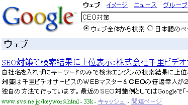 一体なんだろう?リンク元を見ると確かにあった。それも私のページが「CEO対策 の検索結果約1,160,000件中1-10件目」というか、最上位に挙がっている。