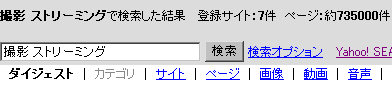 ヤフーの検索で「撮影 ストリーミング」でアクセスがあった。アクセス元を見ると撮影 ストリーミングで検索した結果 登録サイト:7件 ページ:約735000件 という好結果になっていた。ヤフーの登録サイトへの掲載についてはかなり努力し、三度目の正直で「企業間取引 > インターネットコンテンツ制作 > 動画、音声」に掲載していただいた。無料登録最終日ギリギリの登録だった。