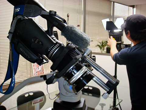 写真は民生カメラのEOSを使ったインフォマーシャルの撮影。商品に糸巻きや樽型の湾曲収差が出ては具合が悪いのでEOSが選択された。