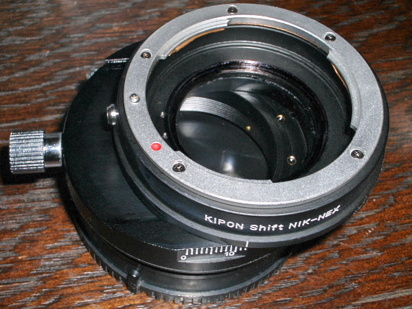 MFのきっコールレンズ用のアダプターだが、なんとPCニッコールと同じようにシフトが可能になる。フルサイズ用レンズはイメージサークルが広いので、APS−CサイズのNEXではレンズを12mmシフトしてもけられることは無かった。特に嬉しいのは35mmで超広角の15mmや18mm、20mmなどはもちろん、17-35mmF2.8や16mmF2.8といったレンズもシフト対応にしてしまうのである。