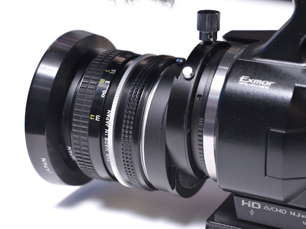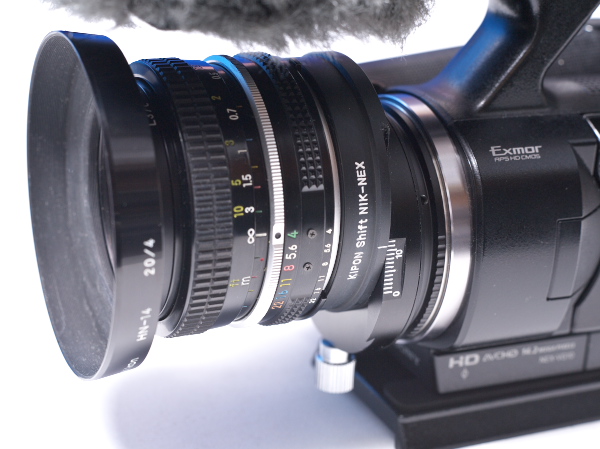 加工精度も良く、PCニッコール28mmなどと同様にノブが付いたボルトを回すことでレンズが焦点面と平行に移動する。移動方向はアダプターに付いたピンを押し下げることでロックが外れて自在な方向へ回転できる。ただしNEX-VG10(NEX-VG20)の場合はカメラのグリップが方向によって干渉するため、若干加工する必要があった。