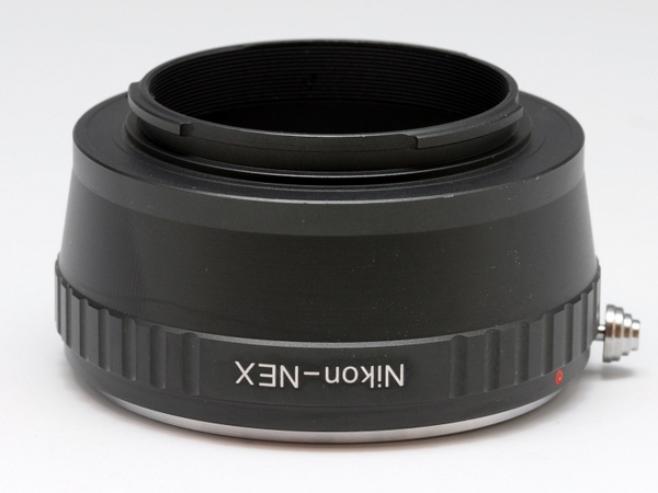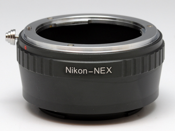 もし使用するレンズが絞り環の無いAF-SのGレンズの場合は絞り連動ピンを操作できるタイプが必要になる。これは日本のハンザのもので、アダプターにあるリングを回して絞りを動かすことが出来る。ただし絞り値はF値での表示ではなく、等間隔に表記された数値となり、開放から最小までも目安となる。しかしNEXで使用する場合は元々ライブビューになっているので被写界深度を確認しながら決めるわけで、F値を表示しなくても全く困ることは無い。