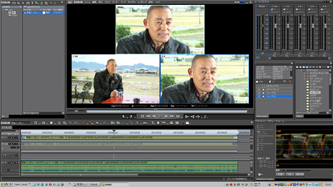 EDIUSのタイムラインにマルチカムモードで配置してみたが、さすがにソニー製同士だけあって、撮影時に正しいホワイトバランスを取っておけばトーンの違いは殆ど無い。