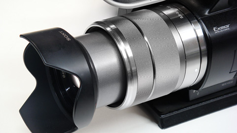 【NEX-VG10 Eマウント3倍ズーム】での検索。正しい名称はE18-55mm F3.5-5.6 OSSで、NEX-5/3の標準セット用のレンズだ。しかしNEX−VG10用の常用レンズとしてとても使いやすい。