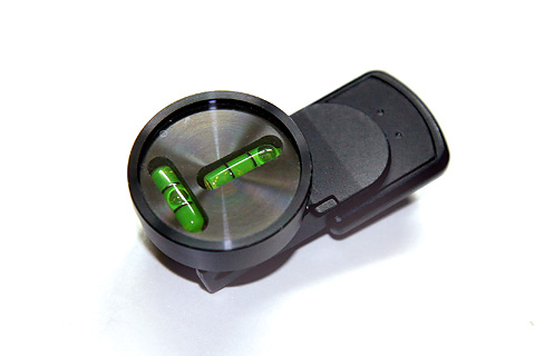 これが仕上がった状態。グリップ部分からはオフセットしているのでグリップを持つ時にも邪魔にならない。水準器の取り付けアダプターーの先端部は汎用のシュー構造になっているので、真上から見るタイプの水準器以外にも後方から見える透明型にも好感できる。ファインダーを見る場合はその方が都合が良さそうに思う。