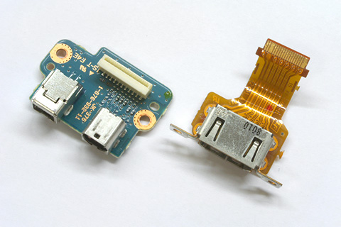 これが交換されたコネクター基板。左がIEEE1394とアナログD型端子がついた基板で、右はHDMI端子の基板。