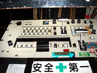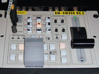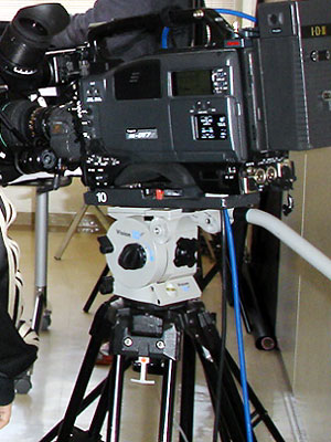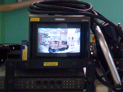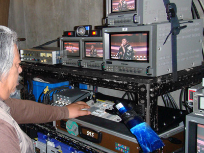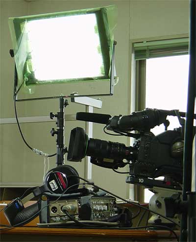 写真は特殊撮影とは関係ないが、蛍光灯照明下でのインタビューに蛍光灯ライトにGフィルターをかけている。これは照明部の技術である。